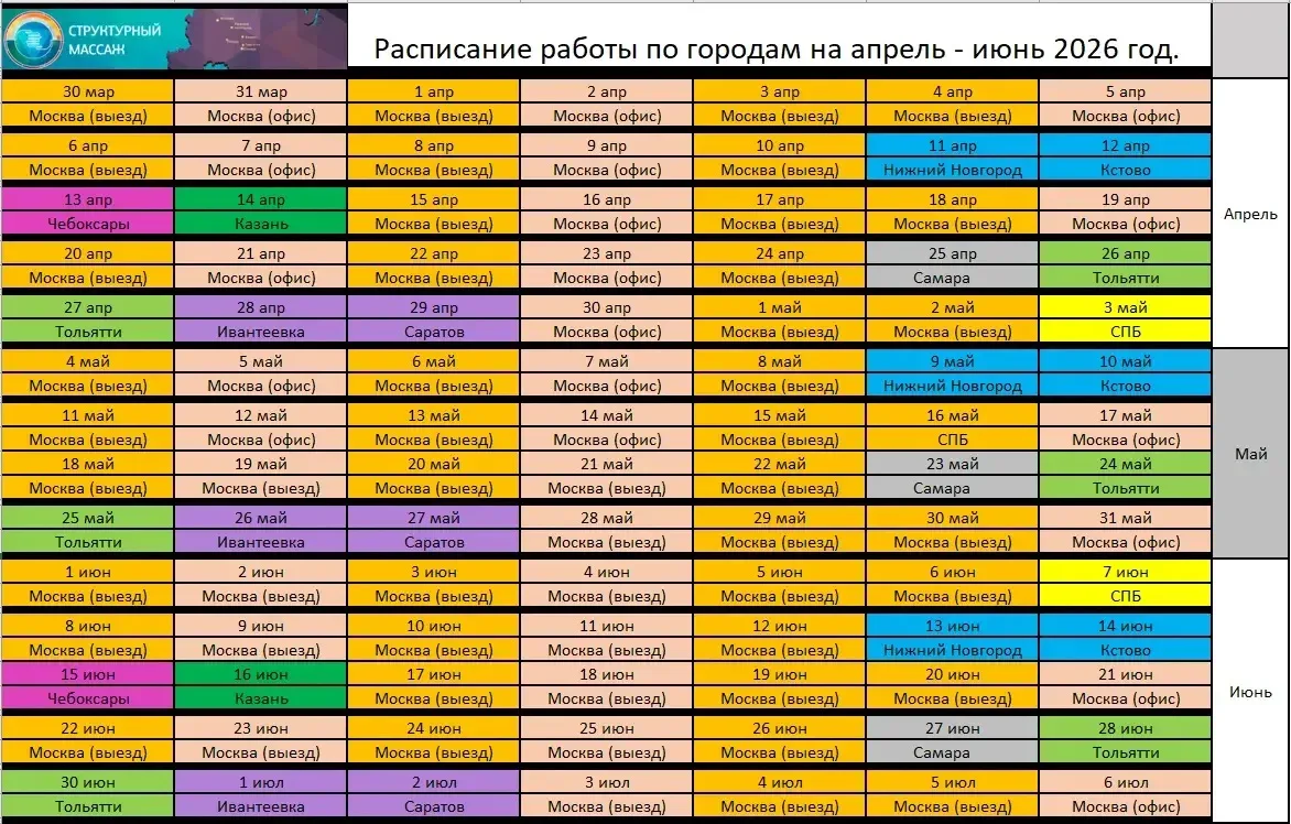 Ознакомьтесь с календарем приемов по городам на апрель — июнь 2026 года.